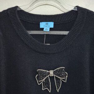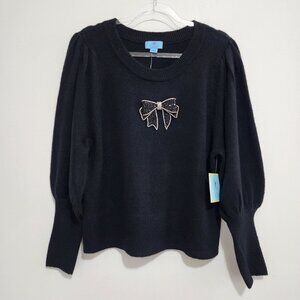 NWT CeCe Black Embellished Bow Sweater – Size M Boutique Chic - preppy, romantic, glamour, feminine style. Perfect for date nights, holiday parties, work events, or cozy chic brunches.