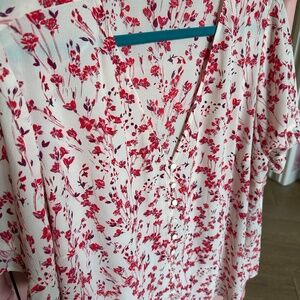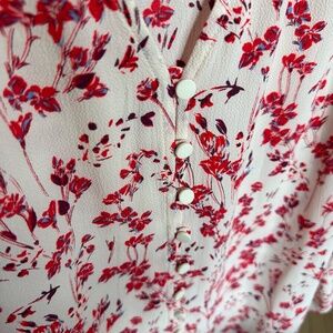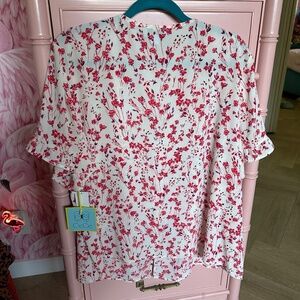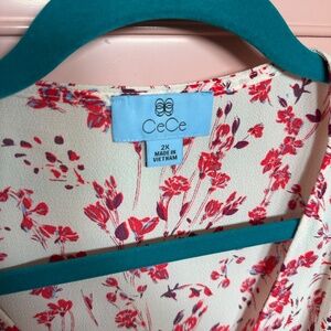 NWT CeCe Floral Ruffle Sleeve Front Button Blouse