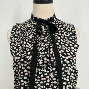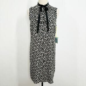 NWT CeCe Mayfair Dress Black Ditsy Floral High Neck Shirt Dress Work Twee Size S