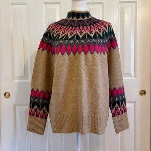 NWT Cece Fair Isle Funnel Neck Sweater in Latte Heather Size XS
