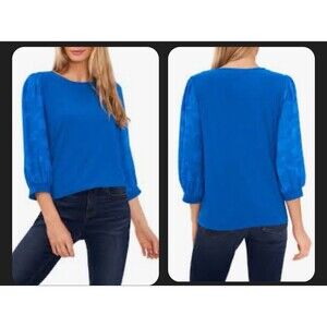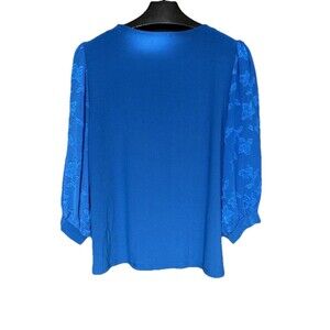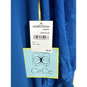 Cece Size L Womens Blue Clip Dot Crew Neck Long Sleeves Blouse Stretchy New NWT