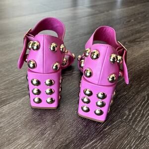 NWT Cecelia New York Gail Studded Block Heel Sandals in Pink Leather Size 7M