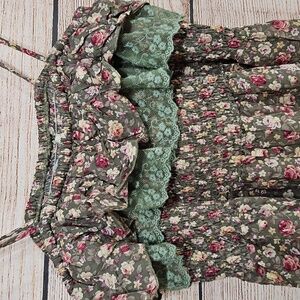 NWT Cecico Olive Green Floral Dress with Ruffle and Ruched Detail Medium