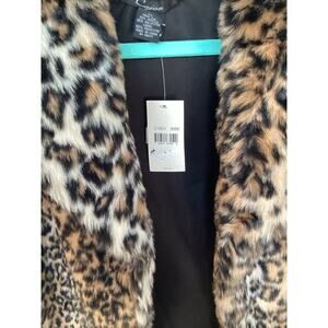 NWT Cejon Women Animal Print Faux Fur Open Front Jacket Vest Brown Beige Size XL