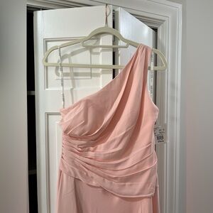 NWT Celebrate DB Studio One Shoulder Georgette Cascade Dress in Petal