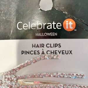 NWT Celebrate It Halloween Skeleton Hands Rhinestone Embellished Hair Clips Pair Silver OS