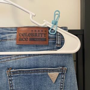 Junior’s Celebrity Ace skirt. Skirt is denim with slight rips & a distressed hem. Brand new with tags! Size 7. Smoke free home!