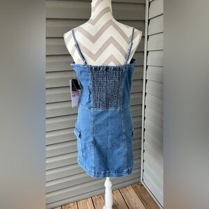 NWT- Celebrity Pink Jeans Smocked Back Dress with Cargo Pockets Sz L