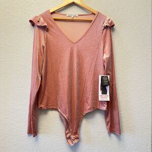 NWT Celebrity Pink Pink Crushed Velvet Long Sleeve Bodysuit Plus Size XXL