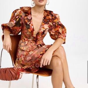 NWT CeliaB Sinai Red Floral Ruffle Puff Sleeve Mini Dress Size Large