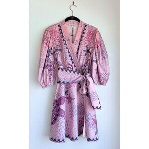 NWT Celina Moon Carly Long Sleeve Wrap Mini Dress in Pink & Purple Sea Life Sz S