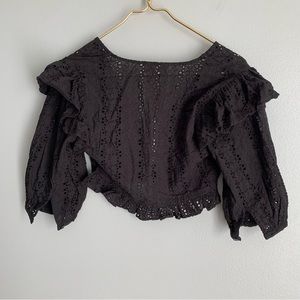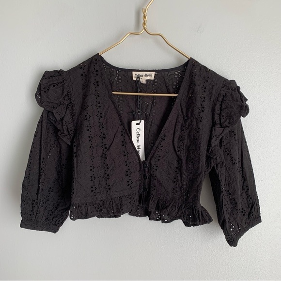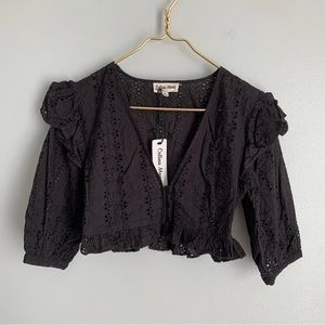 NWT Celina Moon eyelet ruffle button top black size small