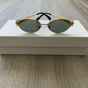 NWT Celine Triomphe Oval Metal 01 Sunglasses Gold/Green