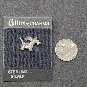 NWT Cellini sterling silver 3D Scottie dog charm, still on card. Measures 17mm by 12mm. Stamped Sterling.