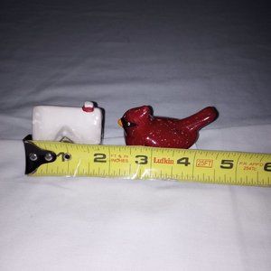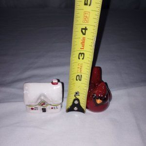 Ceramic red bird & holiday house Shakers measurements 2" tall, 2" length, NWT