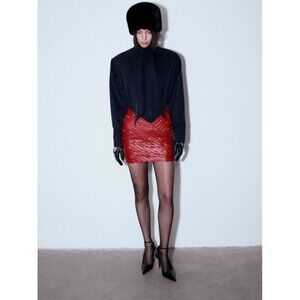 NWT Ceren Ocak Black Lamb Leather Buckle Detail Mini Skirt Women's X-Small XS