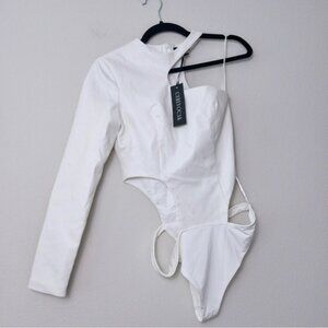 NWT Ceren Ocak x REVOLVE Vegan Leather One Shoulder Cutout Bodysuit S White