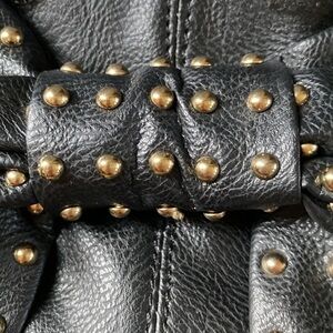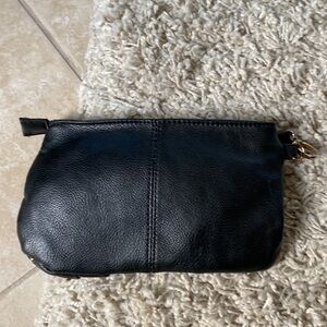 NWT Cesca New York/London black faux leather wristlet with gold River Bow design