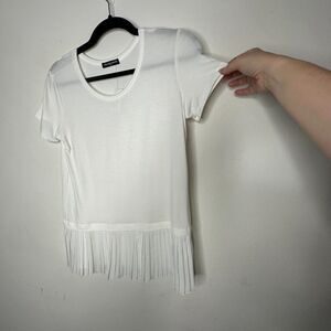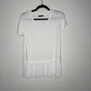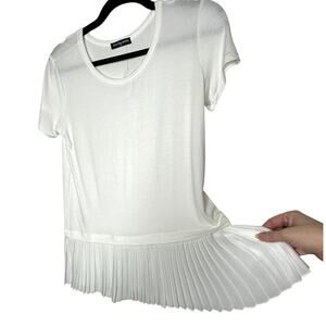 Cha Cha Vente Ivory Sheer Pleated Hem Short Sleeve Scoop Neck Tee Shirt