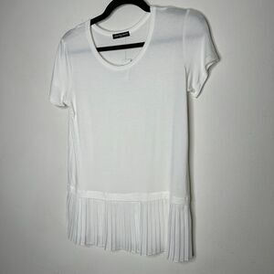 NWT Cha Cha Vente Ivory Sheer Pleated-Hem Short Sleeve Scoop Neck Blouse PM