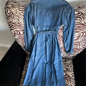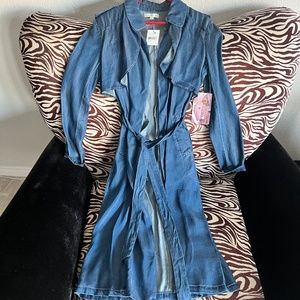NWT Chambray Denim Blue BELTED Trench Coat Duster S Utility Cargo IN STYLE CHIC