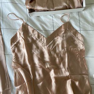 NWT Champagne/Gold SILK PJ Set - Silksilky (Perfect for bridesmaids) Size Large