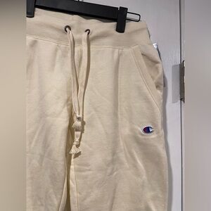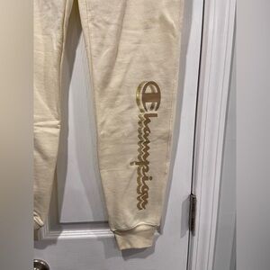 NWT Champion Size XS Power Blend Cream Gold Logo Drawstring Sweatpants Joggers