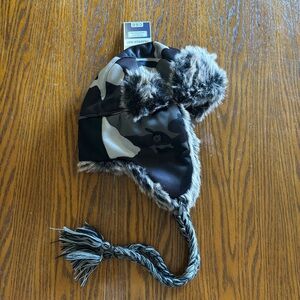 NWT Champs Men Faux Fur Trapper Hat Cap Ski Russian Cossack Camouflage Cap