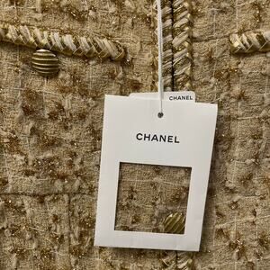 NWT Chanel 2019 Runway Collection Beige Gold Ecru Jacket Short Sleeve 36 / US 4