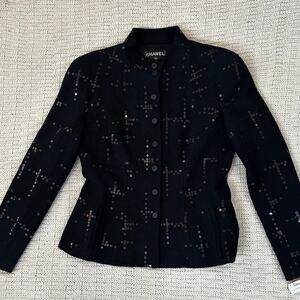 NWT Chanel Black Sequin Blazer Jacket Skirt Suit Set FR 42 US 10 02A MSRP $4340