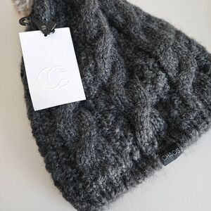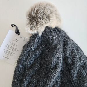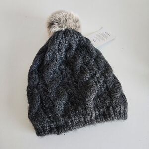 NWT Chaos REI Taboo Pom Beanie Cable Knit Textured Gray Hat with Faux Fur