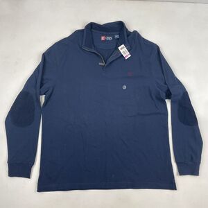 NWT Chaps Blue 1/4 Quarter Zip Pullover Top XXL 2XL Corduroy Elbow Patch Cotton