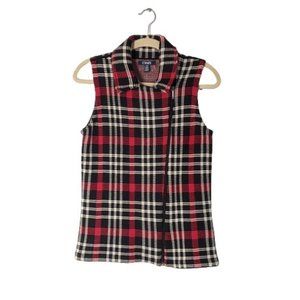 NWT Chaps Knitted Plaid Red/Black Vest Sweater Asymmetrical Zip Women's Size S