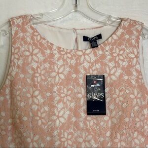 NWT Chaps Pink Floral Lace Overlay Sheath Dress Size 12 Women’s Sleeveless