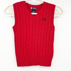 Chaps by Ralph Lauren Boys Fall School Cable Knit Sweater Vest in Red. Size 7.