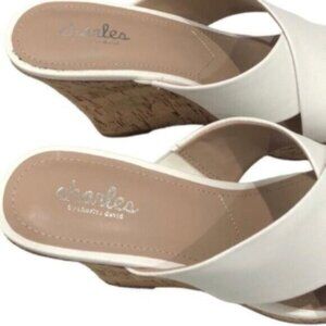 NWT Charles David White Leather Wedge Slide Business Casual Dressy Sandals 9.5M