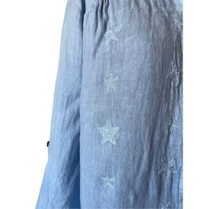NWT Charlie B Linen Stars Embroidered Button Front Top size L