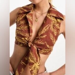 NWT Charlie Holiday Anthropologie Palma tie front crop top