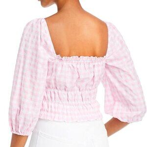 NWT Charlie Holiday Boheme Off The Shoulder Checkered Peasant Top Pink Size XS