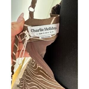 New with tags Charlie Holiday Lola mini slip dress in retro zebra print, size Medium (6).