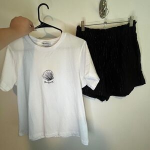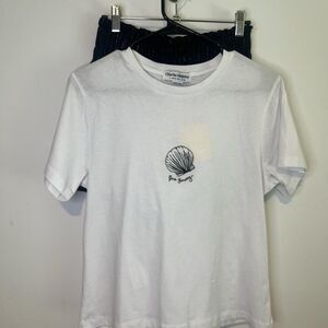 USA size 6 White and black shell graphic tee and shorts set #coastalvibes
