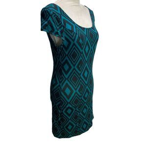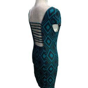 NWT Charlotte Russe Dress L Sexy Teal Black Diamond Pattern Stretch String Back