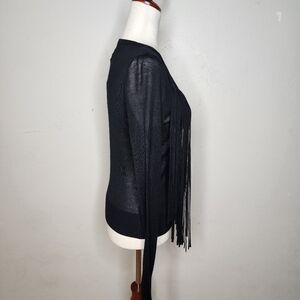 NWT Charlotte Tarantola Black Fringe Front Cardigan Size Medium