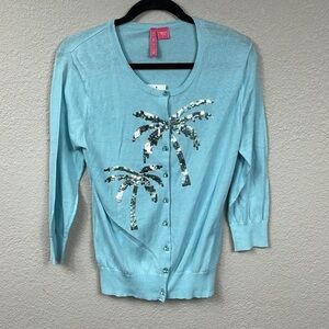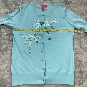 NWT Charlotte Tarantola Lightweight Cotton Cardigan Sweater Sequin Palm Tree L