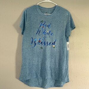 🦋 NWT Charming Charlie 4th of July Patriotic Red White Blessed Linen America USA