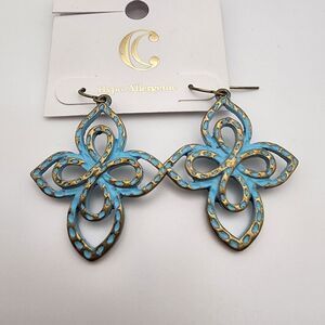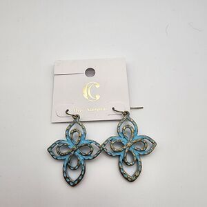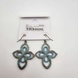 NWT Charming Charlie Blue & Gold Tone Dangling Cross Earrings