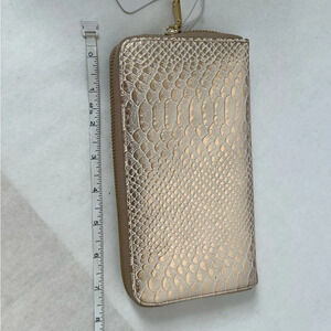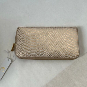 NWT - Charming Charlie Snake Skin Zip Around Wallet Gold Shimmering Clutch Bag