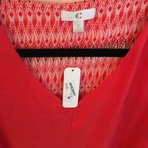 NWT Charming Charlie's coral top with patterned underlay pairs great with white pants!