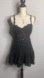 This black eyelet mini dress is a striking blend of elegance and playful charm. Features a fitted bodice with a sweetheart neckline, supported by delicate shoulder straps. The intricate eyelet detailing throughout the dress showcases a beautiful floral and geometric pattern, offering a peek-a-boo effect that is both subtle and alluring. The waist is cinched with a matching belt, accentuating the figure and providing a flattering silhouette. Below the belt, the skirt flares out into a tiered, ruffled hem, adding movement and a flirty flair to the design.