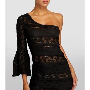NWT Charo Ruiz Lora Maxi Dress in Black. It has a single bell sleeve and scalloped trims throughout the figure-skimming design. Style yours with neutral underpinnings for inconspicuous coverage.